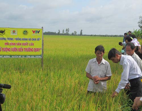 Nằm trong dự án "Xây dựng cánh đồng mẫu lớn tại các vùng trồng lúa chủ yếu" của Trung tâm Khuyến nông Quốc gia, Trung tâm Khuyến nông tỉnh Sóc Trăng chọn 100 ha, với 62 hộ dân tại ấp Trà Coi A, xã Mỹ Hương, huyện Mỹ Tú làm dự án, trong đó có 2,5 ha làm thí điểm thực hiện mục "Từ ruộng vườn đến trường quay", do VTV Cần Thơ và Cty CP phân bón Bình Điền thực hiện.