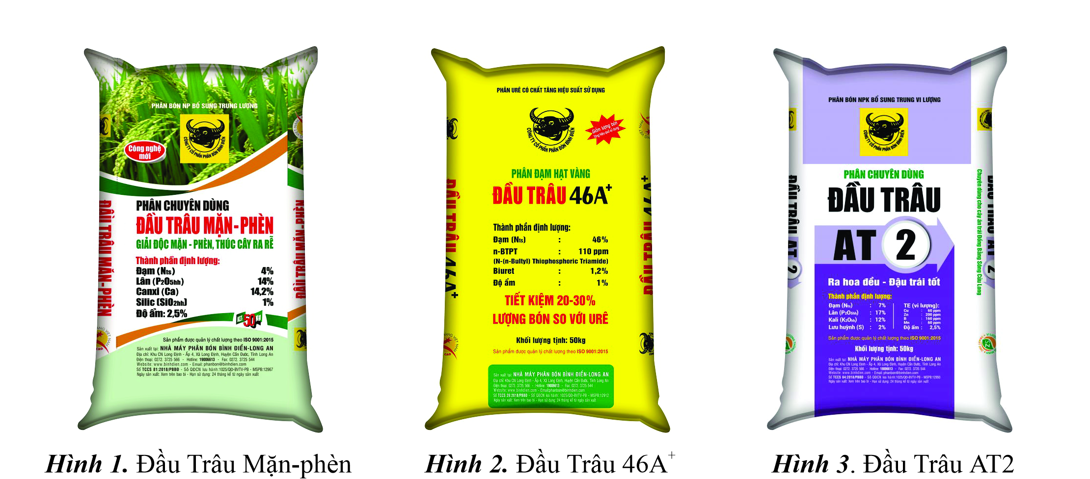 - Bón phân Đạm. Nên bón các dạng phân Ure chậm phân giải như Đầu Trâu 46A+ (Hình 2) chống thất thoát N (theo hướng dẫn kỹ thuật của Cục Trồng Trọt – Trung Tâm Khuyến Nông Quốc Gia – Viện Lúa Đồng Bằng Sông Cửu Long) để cây không bị thiếu N do mặn cạnh tranh.