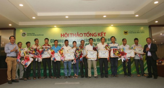Các nhà nông ưu tú nhận phần thưởng từ BTC chương trình. Ảnh: DŨNG PHƯƠNG