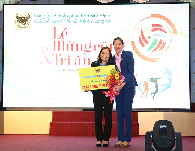 Dịp này, qua Liên đoàn lao động tỉnh, CLB Bóng chuyền nữ VTV - Bình Điền - Long An đã dành tặng 2 căn nhà tình nghĩa cho gia đình chính sách tại Long An, với trị giá 100 triệu đồng.
