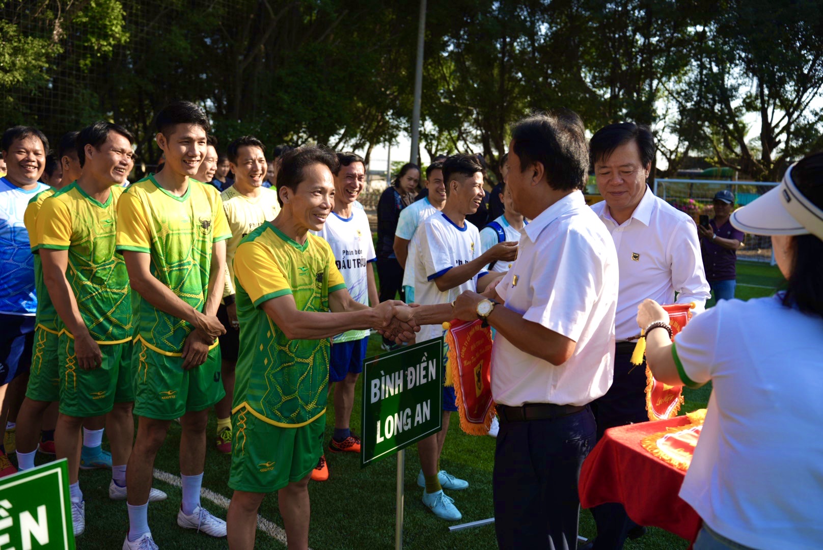 Ông Ngô Văn Đông - Bí thư Đảng ủy - Tổng Giám Đốc Công ty Cổ phần Phân bón Bình Điền đang trao giải cho các đội có thành tích xuất sắc ở môn Bóng đá