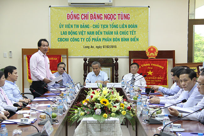 Chủ tịch Tổng Liên đoàn lao động Việt Nam Đặng Ngọc Tùng, nói "Thu nhập bình quân gần 13 triệu đồng/người/tháng, là con số rất ấn tượng, ngay cả các đơn vị thành viên của Tập đoàn Hóa chất cũng chỉ mới đạt 7,2 triệu đồng. Chỉ ở khu vực Cty mẹ đã có gần 600 người lao động, nếu tính cả các đơn vị thành viên thì Bình Điền đang quản lý, chăm lo đời sống mọi mặt cho hơn 1000 công đoàn viên. Ngoài lương, thưởng Cty thường xuyên chăm lo cho người lao động đầy đủ các chế độ theo quy định của Nhà nước và theo thỏa ước lao động tập thể được Hội nghị người lao động hằng năm thảo luận, thông qua rất rõ ràng, cụ thể. Bình Điền còn là một doanh nghiệp luôn thực hiện tốt các hoạt động xã hội - từ thiện với kinh phí hàng chục tỷ đồng/năm cho học bổng Tiếp sức đến trường, xây nhà tình nghĩa, tình thương, mái ấm Bình Điền, kết nghĩa để giúp người dân ở buôn làng xa xôi vươn lên thoát nghèo, làm giàu... Là người đứng đầu tổ chức Công đoàn cả nước, tôi rất phấn khởi và cám ơn những gì mà Bình Điền đã làm cho người lao động... Những việc làm đó đã được Nhà nước, cấp trên ghi nhận, khen thưởng, như: Cờ thi đua xuất sắc của Bộ Công thương, Đơn vị dẫn đầu ngành hóa chất VN về doanh thu và lợi nhuận, Bằng khen của Ban Dân vận TW và của Bộ Công thương về thành tích kết nghĩa với Buôn đồng bào dân tộc thiểu số; một cá nhân được trao tặng Huân chương lao động hạng Nhất, một tập thể và bốn cá nhân được trao tặng Huân chương lao động hạng Ba...".