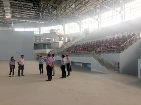 Ban tổ chức khảo sát Nhà thi đấu mới được xây dựng xong của tỉnh Kiên Giang. Ảnh: PHÚC NGUYỄN