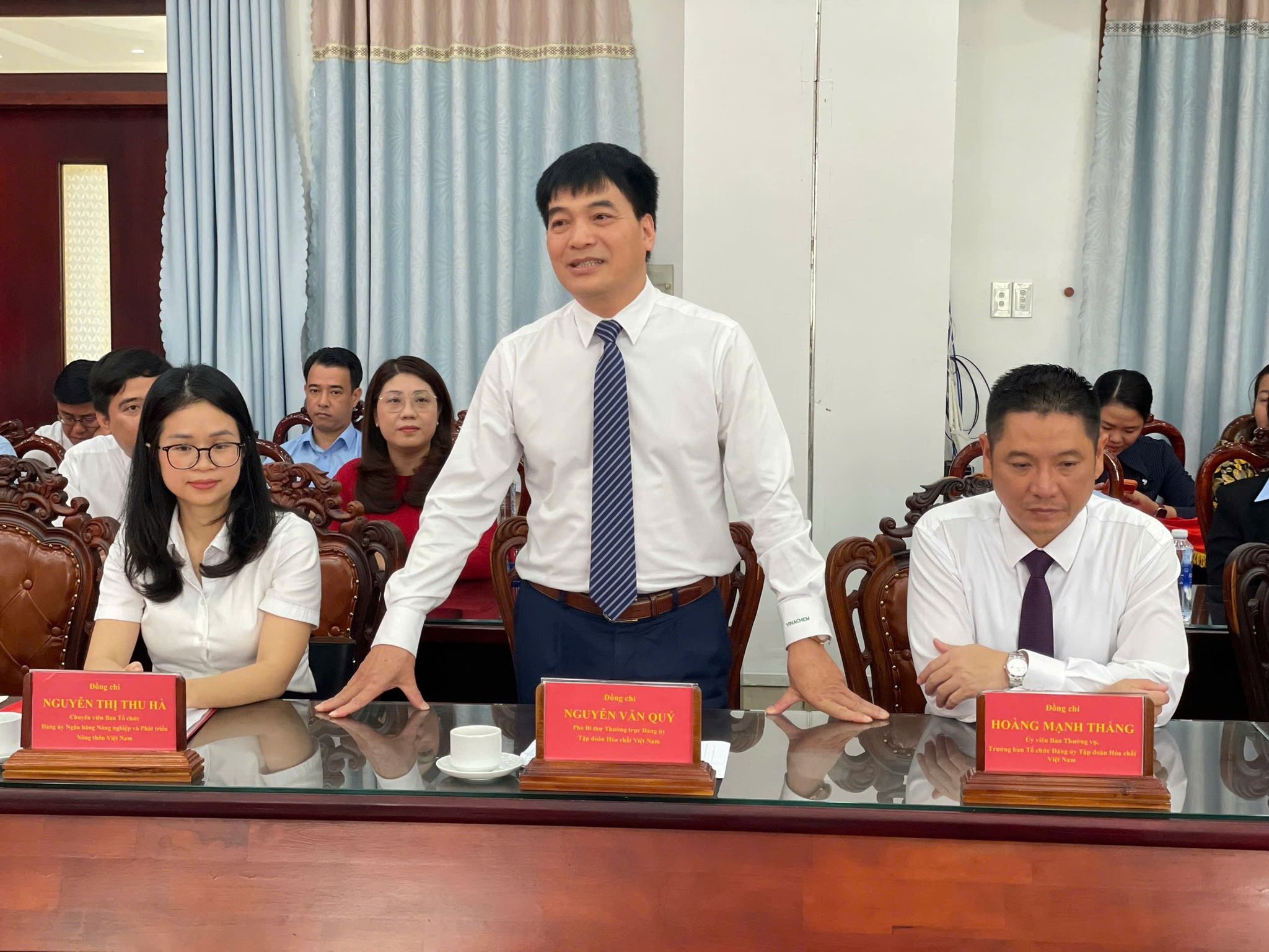 Tham dự có các đồng chí: Hà Phước Thắng - Thành ủy viên, Bí thư Đảng ủy, Chủ tịch Hội đồng nhân dân xã Tân Nhựt; Nguyễn Văn Quý - Phó Bí thư Thường trực Đảng ủy Tập đoàn Hóa chất Việt Nam và các đồng chí Ủy viên Ban Thường vụ Đảng ủy xã.