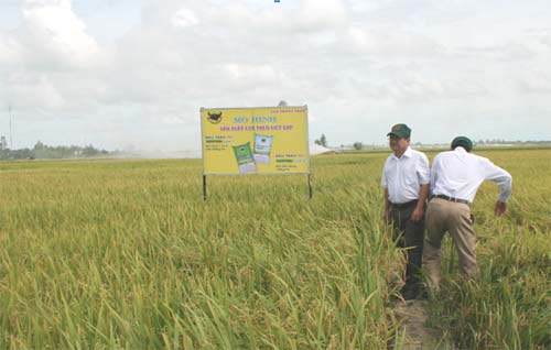 Kết quả so sánh giữa 2 ruộng, ruộng bón phân Đầu Trâu Agrotain lúa 1 và Đầu Trâu Agrotain lúa 2 và ruộng bón các loại phân UREA, DAP, NPK và KCL: Ruộng bón Agrotain lúa 1 và Đầu Trâu Agrotain lúa 2 có những ưu điểm sau: giảm 24.3 kg/ha (tương đương 25.1%) lượng đạm nguyên chất; cây lúa sinh trưởng khoẻ, cứng cây, cho bông to, sáng hạt, không đổ ngã, số chồi lúa hữu hiệu tăng 1.79%; số lần phun thuốc trừ dịch hại giảm 3 lần/vụ; năng suất đạt 6.0 tấn/ha, tăng 0.3 tấn/ha, lợi nhuận tăng hơn 2.367.000 đồng/ha. Qua đó cho thấy sử dụng phân Đầu Trâu Agrotain lúa 1 và Đầu Trâu Agrotain lúa 2 bón cho lúa chống được thất thoát phân đạm, tăng năng suất, hiệu quả sản xuất đạt lợi nhuận cao; đây là điểm mới mà các loại phân khác không có. Đề nghị Công ty Phân bón Bình Điền kết hợp với ngành Nông nghiệp ở các địa phương phổ biến rộng rãi hơn nữa để Nông dân tiếp cận và sử dụng loại phân mới này được nhanh hơn./.
