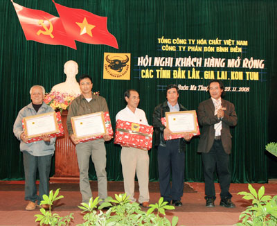 Công ty cũng đã trao thưởng cho các đại lý kinh doanh đóng góp cho sự phát triển phân bón Đầu Trâu.