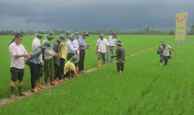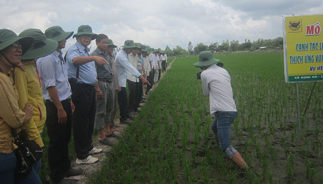 Tại xã Hòa Lộc, huyện Tam Bình, Vĩnh Long, coi 2 ruộng lúa trong và ngoài mô hình đã trổ bông, ông Trần Văn Sơn, Phó GĐ Trung tâm Khuyến nông Vĩnh Long, so sánh: “Ruộng trong mô hình gốc lúa sáng, thông thoáng, lá lúa đứng thẳng, bông lúa to, số hạt trên bông nhiều, trong khi ruộng bên ngoài mô hình gốc lúa tối, cây lúa ken dày đặc, lá mềm oặt, bông nhiều nhưng nhỏ và ngắn, số hạt trên bông ít, khả năng đổ ngã cao; thấy năng suất bên này cao hơn bên kia là cái chắc rồi”