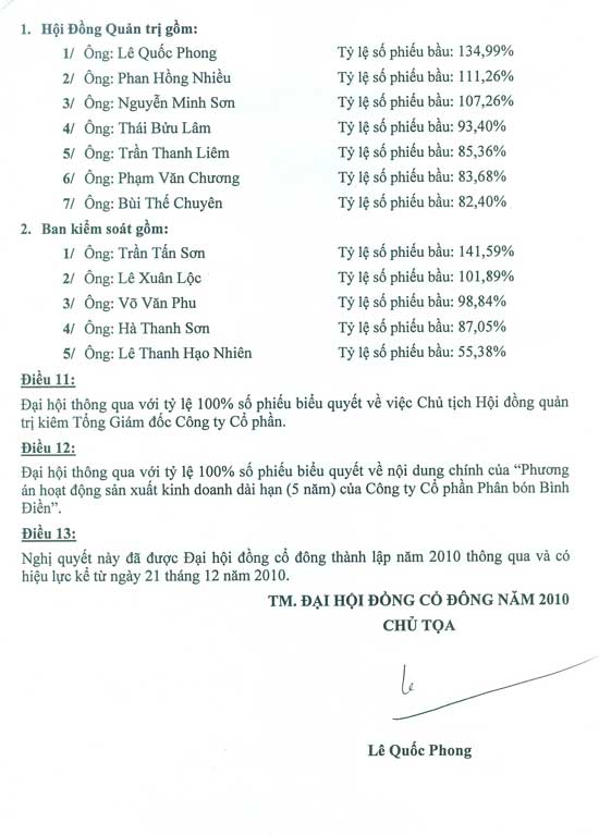 Nghị quyết đại hội đồng cổ đông thành lập Công ty cổ phần phân bón Bình Điền