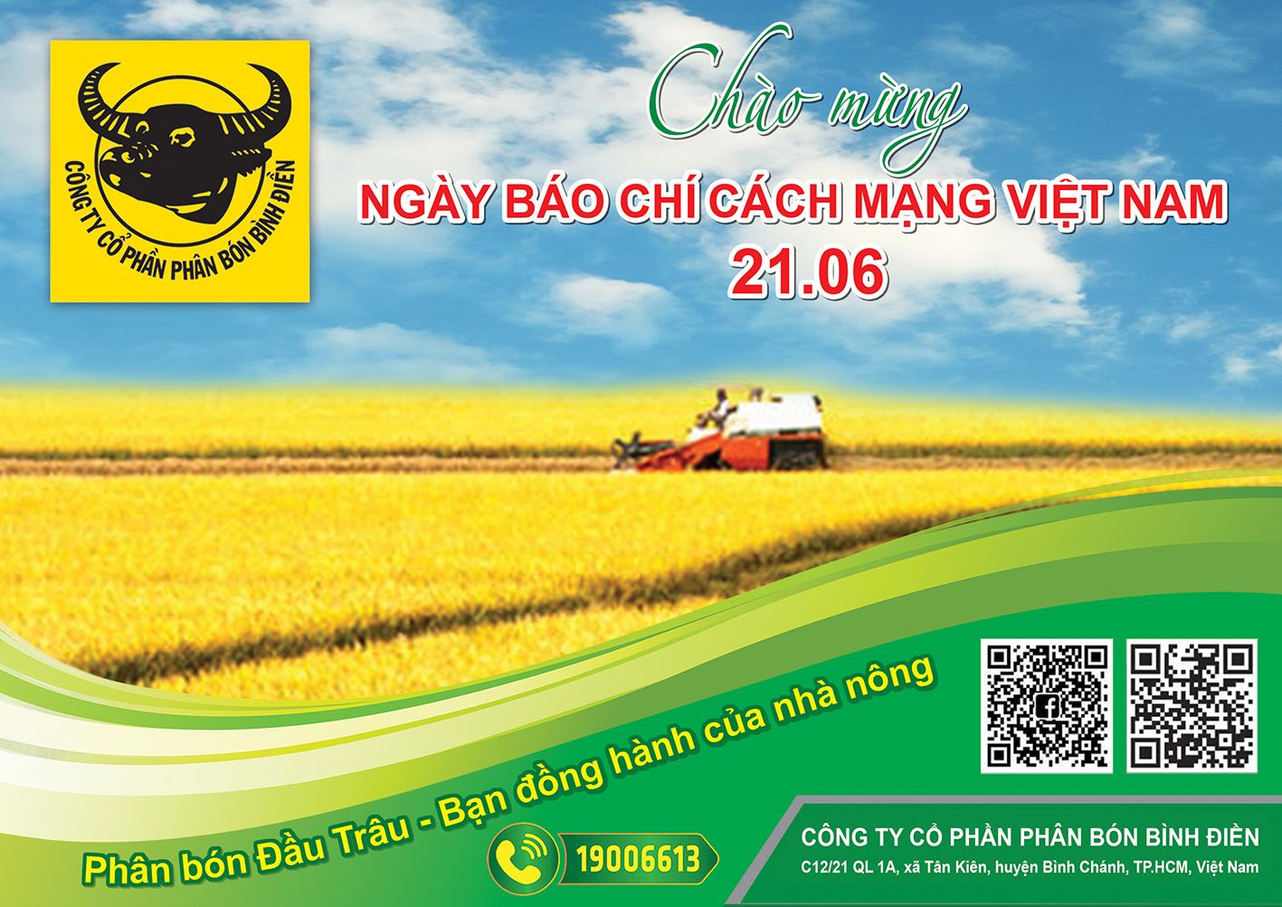 Nhân kỷ niệm 96 năm ngày Báo chí Cách mạng Việt Nam (21/06/1925 - 21/06/2021), Công ty CP phân bón Bình Điền xin gửi tới các Nhà báo, Phóng viên, Biên tập viên, những người làm việc trong ngành Truyền thông, Báo chí lời chúc sức khỏe, hạnh phúc và thành công trong sự nghiệp.