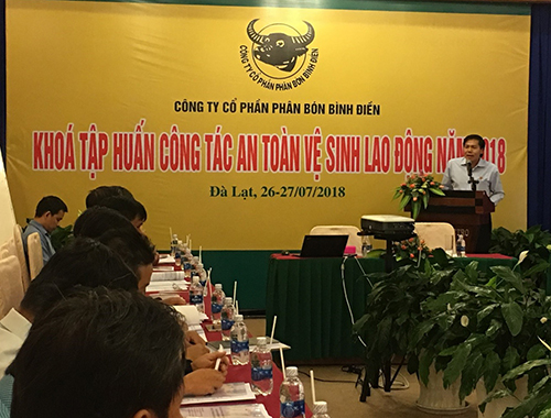 Nhằm tuân thủ các quy định pháp luật của Nhà nước về công tác tập huấn an toàn vệ sinh lao động cho cán bộ công nhân viên trong Công ty. Ngày 26 – 27/07/2018 tại Thành phố Đà Lạt – Tỉnh Lâm Đồng, Công ty Cổ phần Phân bón Bình Điền phối hợp với Trường Cao Đẳng Kỹ Nghệ II đã tổ chức khoá tập huấn công tác an toàn vệ sinh lao động năm 2018 cho người lao động đến từ các Công ty Cổ phần (công ty thành viên), các Đơn vị trực thuộc và phòng ban chức năng tại Công ty. Thành phần tham dự khóa tập huấn gồm có: