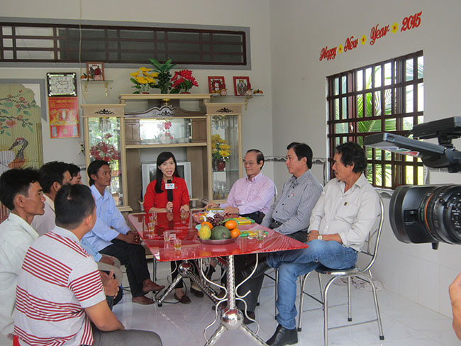Từ ruộng trở về, theo chỉ đạo của đạo diễn Đặng Đáng, gian phòng khách nhà ông Hoài chỉ trong chốc lát trở thành trường quay. 5 nông dân tham gia chương trình, các nhà khoa học trong Hội đồng cố vấn, cán bộ quản lý cấp xã, ấp cùng đại diện Cty CP Phân bón Bình Điền tiếp tục trao đổi.