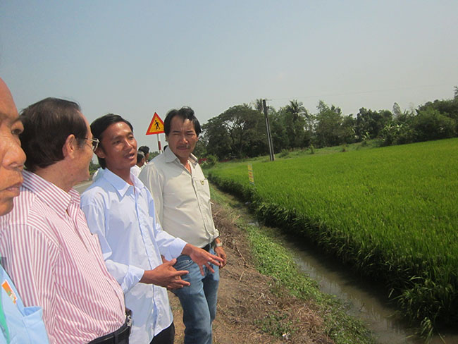 Thăm chân ruộng tham gia chương trình, nghe nông dân Nguyễn Thanh Hoài nói thao thao về về giống, mật độ sạ, lượng phân đã bón, lượng thuốc BVTV đã xịt, số ngày công lao động…tổng cộng mỗi công ruộng hết đúng 2 triệu đồng, GS.TS Nguyễn Bảo Vệ, chuyên gia của chương trình bước xuống bờ ruộng, nhổ một nhánh lúa lên, ông nói: “Cây lúa xanh đậm, bông lúa đã đỏ đuôi thế nầy mà không bị ngã đổ, bông lại to, hạt nhiều, tôi cầm chắc mỗi ha đạt không dưới 10 tấn lúa tươi. Nếu bán tại ruộng hiện tại với giá thật bèo là 4000 đồng/kg thì anh Hoài cũng thu 40 triệu, trừ 20 triệu chi phí, còn bỏ túi 20 triệu, lãi vậy là trên 50% rồi”.