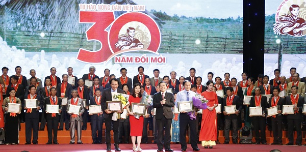 Gặp gỡ Nông dân Việt Nam xuất sắc năm 2017, Tổng Bí thư Nguyễn Phú Trọng, nói: “Lịch sử đã khẳng định nông dân là người đóng góp to lớn cho sự nghiệp cách mạng của Đảng và dân tộc, là trụ đỡ của nền kinh tế đất nước và sự ổn định xã hội mỗi lúc tình hình cách mạng gặp khó khăn, sóng gió. Đất nước ta là đất nước nông nghiệp, đi lên cũng từ nông nghiệp, nên nông nghiệp luôn là mặt trận cực kỳ quan trọng. 30 năm đổi mới, nông nghiệp nước nhà có sự phát triển rất tốt, rất nhanh. Cũng đồng đất ấy mà từ chỗ 2 triệu người dân phải chết đói năm 1945 do thực dân, phong kiến; trước đổi mới dân ta làm không đủ ăn, phải đi vay, đi nhập cả lương thực dùng cho chăn nuôi; đến chỗ 92 triệu dân có đủ ăn, ăn no, ăn ngon, còn xuất khẩu mỗi năm 7- 8 triệu tấn gạo; rồi trái cây, tôm cá bán khắp 5 châu, vào được cả những thị trường khó tính như Mỹ, Nhật. Đời sống của bà con nông dân ở vùng cao, vùng sâu cũng khá hơn rất nhiều. Đó là đóng góp rất to lớn của ngành nông nghiệp, của nông dân cả nước, trong đó có các bác, các anh chị đang ngồi đây. Tôi rất ủng hộ chương trình vinh danh nông dân hằng năm của các đồng chí”.